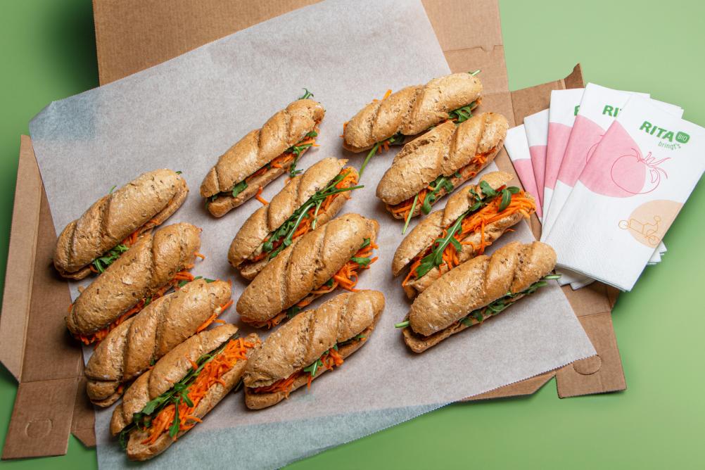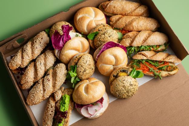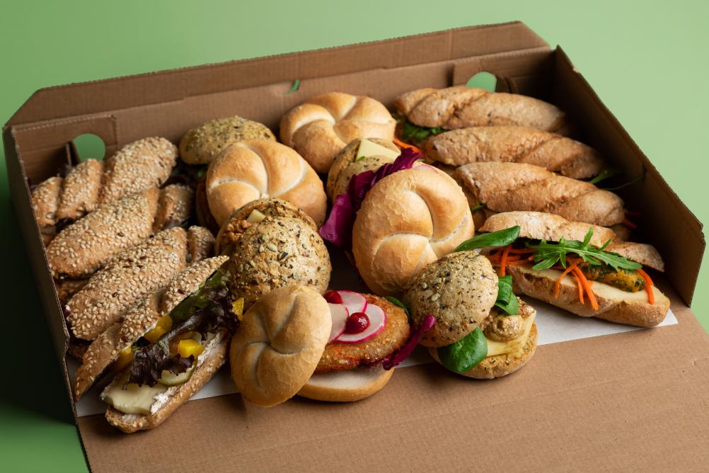 4x BIO Falafel und Hummus, 4x BIO Antipasti, 4x BIO Karottenlachs mit Krenrahm, 4x Bio Jour Semmerl