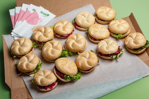 4x BIO Karotten-Kokos Aufstrich, 4x BIO Erbsenaufstrich, 4x BIO Rote Rüben-Pilz Tatar, 6x BIO Jourgebäck