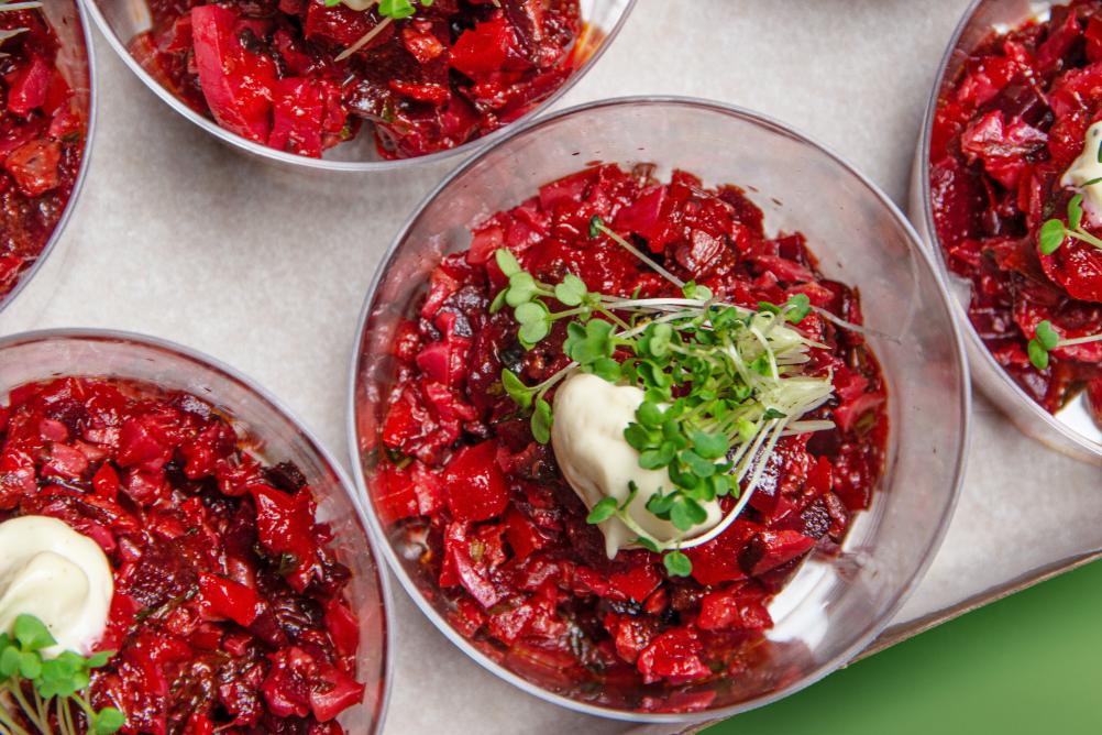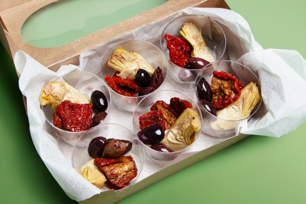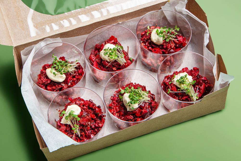 Frischkäse aus Tofu und Kren. Tomatenmark, Rohrohrzucker, Branntweinessig, Salz, Gewürze.