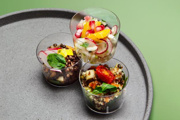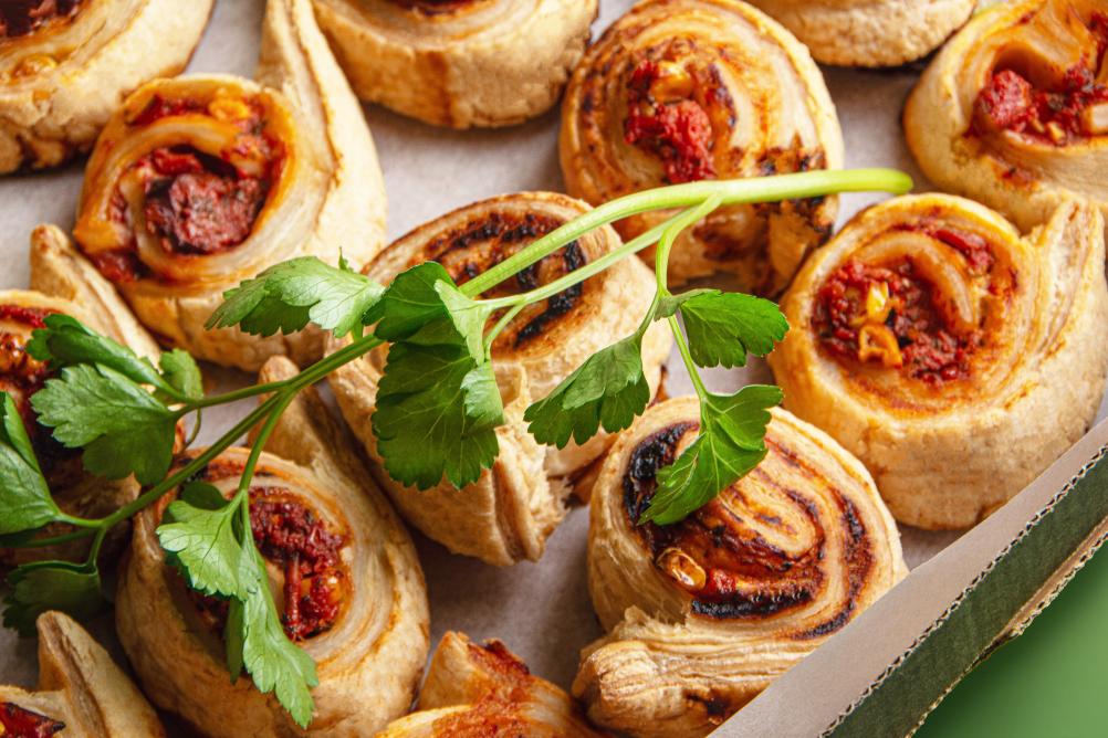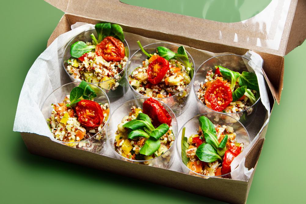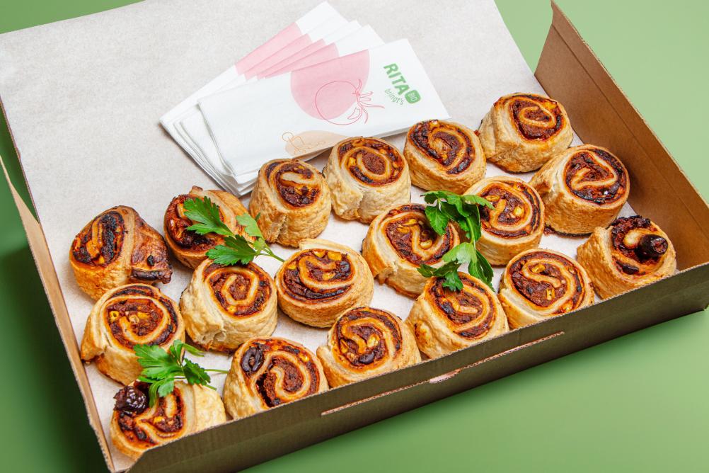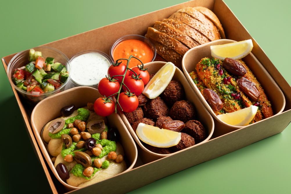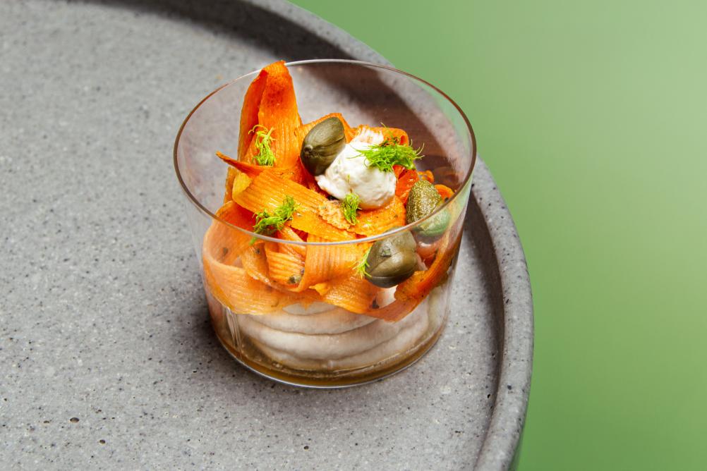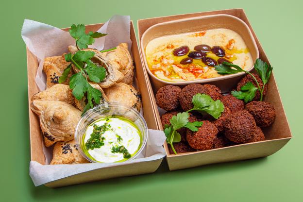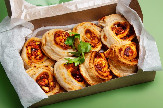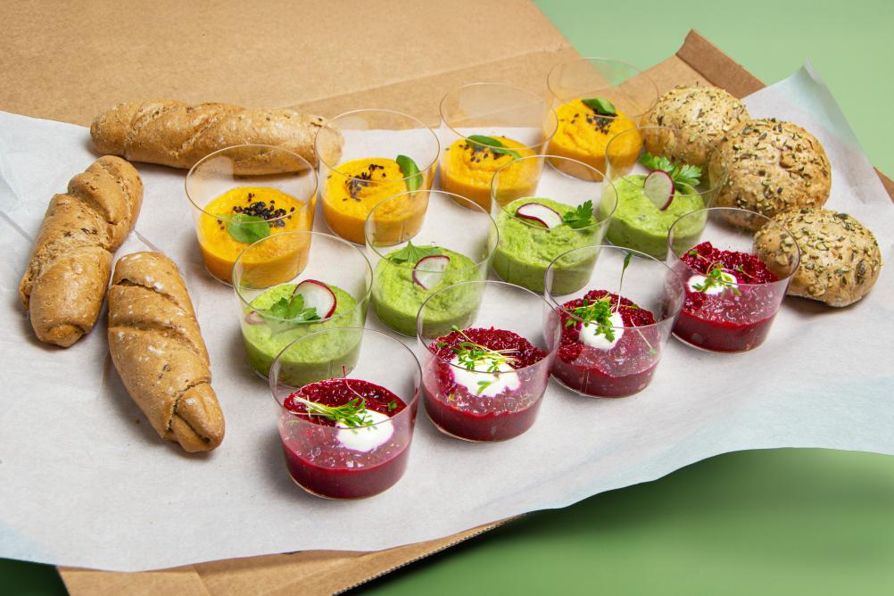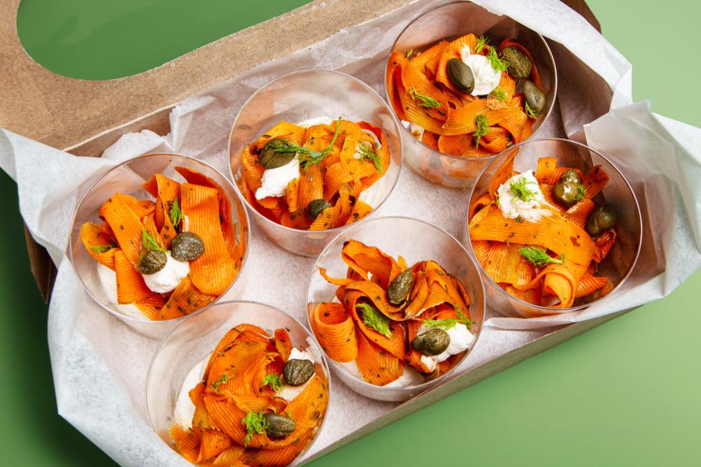 - BIO Kornspitz mit Hummus, Karotten Kokos Aufstrich, Karotte und Rucola (vegan, Allergene: A,N)