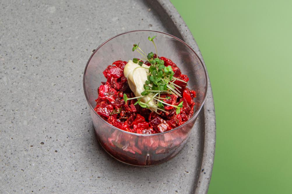 Sojadrink, Senf, Knoblauch, Apfelessig, Salz, Pfeffer, Rapsöl.