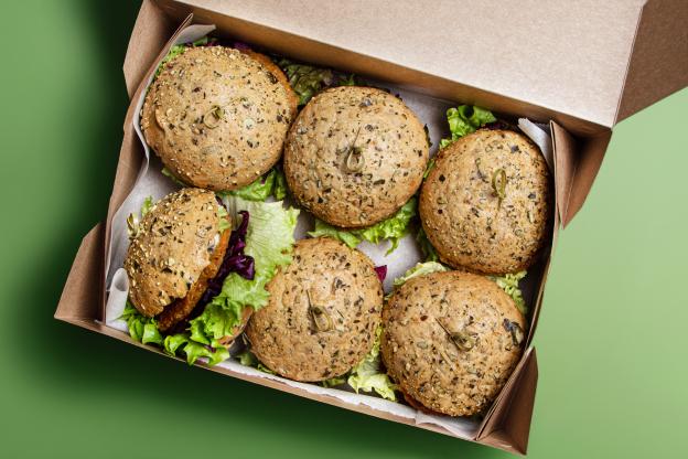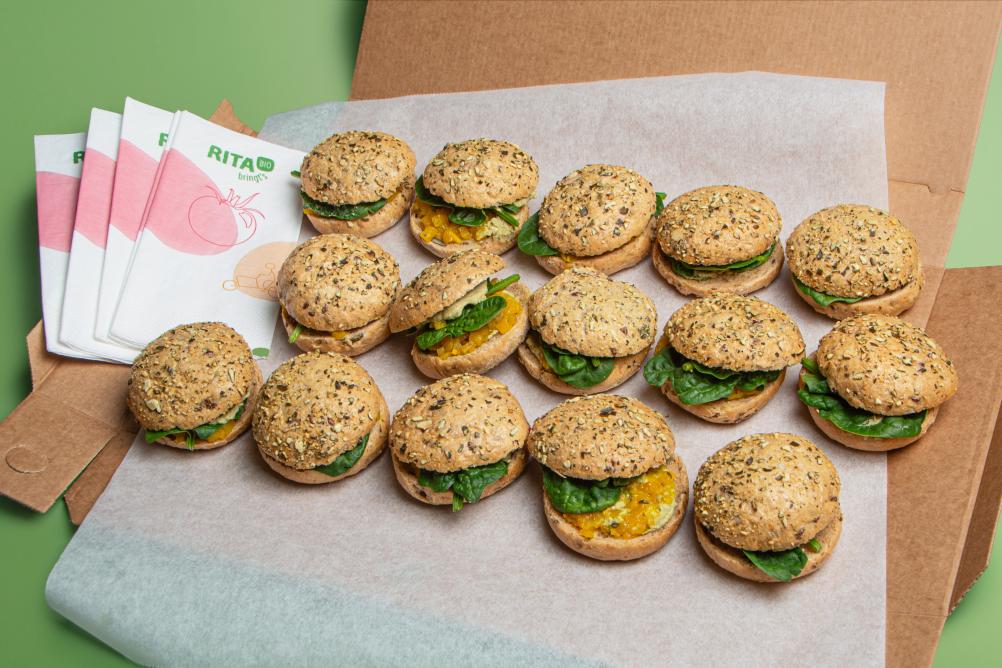 - BIO Semmerl mit Kichererbsen Patty, Kren, Radieschen, Ketchup und Mayo (vegan, Allergene: A,G,F,O)