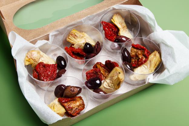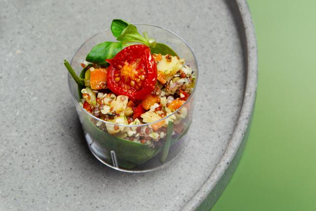Kichererbsen, Zwiebel, Knoblauch, Karotten, Weizenmehl, Stärke, Paprika geräuchert, Räuchersalz, Rapsöl, Xanthan, Salz, Pfeffer.